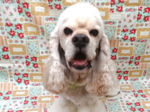 アメリカンコッカーのアルくんです☆ 汚れた毛もシャンプーをしてふわふわ、真っ白になりました✨ 大きなわんちゃんですがお利口さんなので とってもカットしやすくてありがたいです😊♥︎♥︎